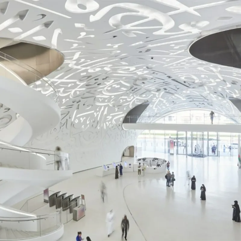 Ceiling aluminum veneer is a building decoration material based on aluminum alloy, commonly used for indoor ceiling installation. It is usually made of aluminum alloy plates that have undergone surface treatment, and has the characteristics of lightweight, durability, and aesthetics.