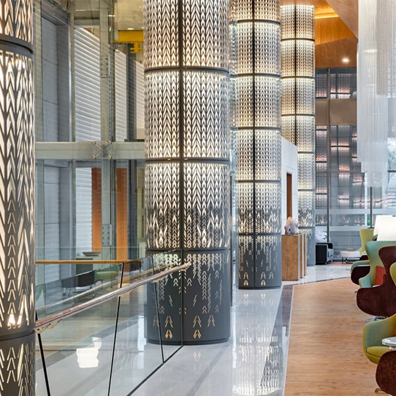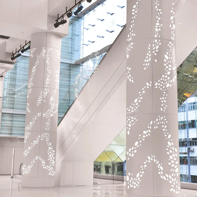 Column wrapped aluminum veneer is an aluminum sheet specifically designed for column decoration. It is processed into an arc shape through techniques such as bending and rolling, and is used for wrapping and decorating exterior walls, interior columns, and other parts of buildings.
