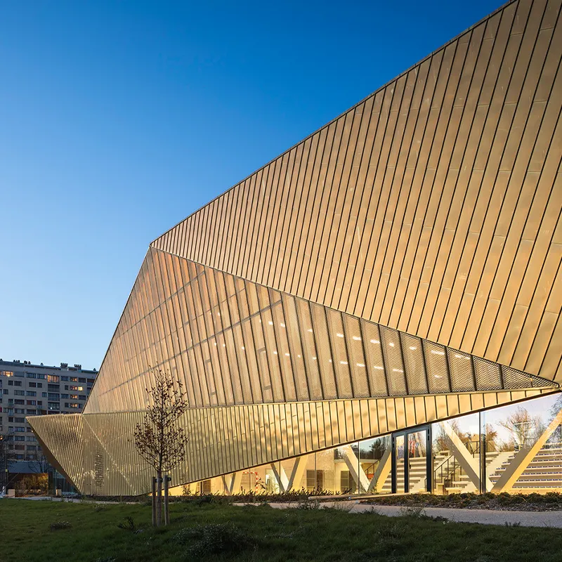 Curtain Wall Aluminum Veneer is a metal sheet widely used for exterior wall decoration in buildings. It is typically made from processed aluminum alloy substrates and is used as part of curtain wall systems to provide aesthetic and protective functions for buildings