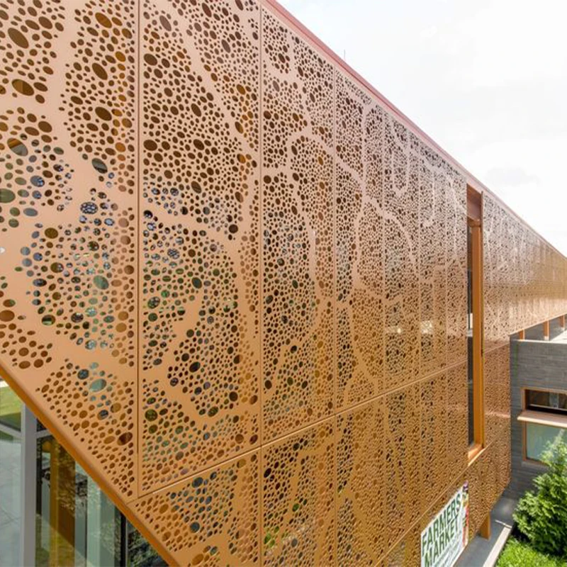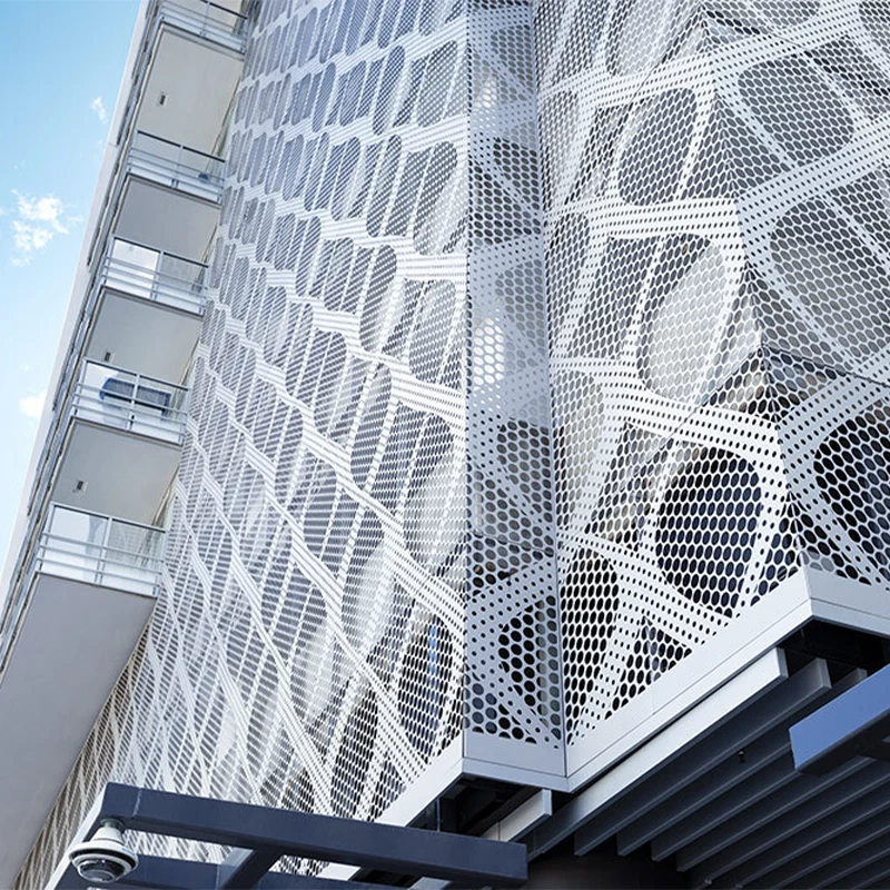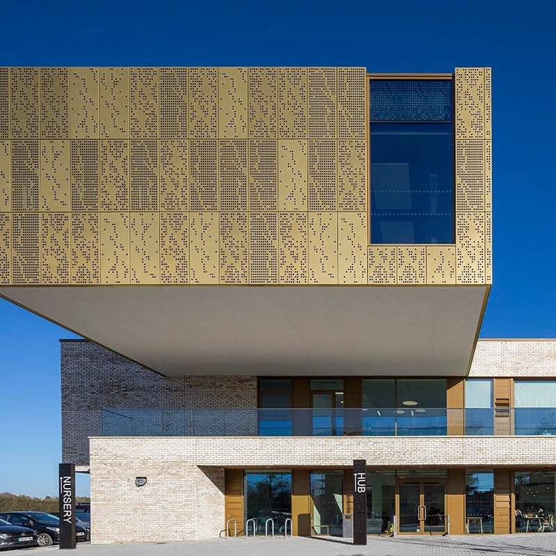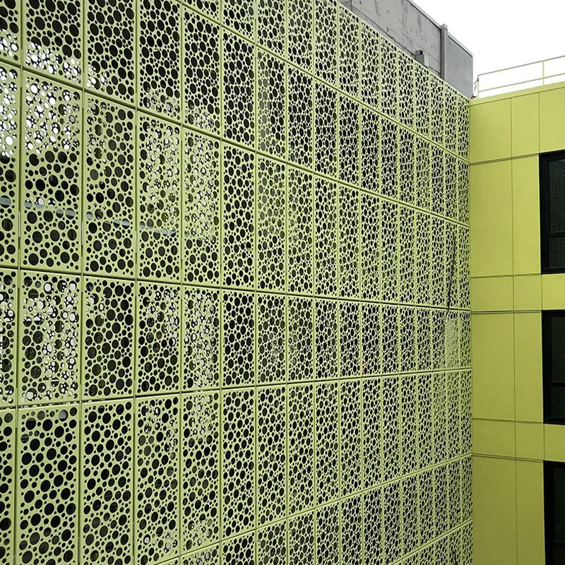 Punched Aluminum Veneer is a decorative panel made of aluminum alloy plate as the base material through mechanical punching process. Its surface has various shapes of holes, such as circular holes, square holes, rectangular holes, elliptical holes, or triangular holes, among which circular and elliptical holes are widely used. This design not only endows the board with fashionable and personalized artistic features, but also creates a unique spatial atmosphere through different apertures, layouts, and color combinations, enhancing the modernity and hierarchy of the building