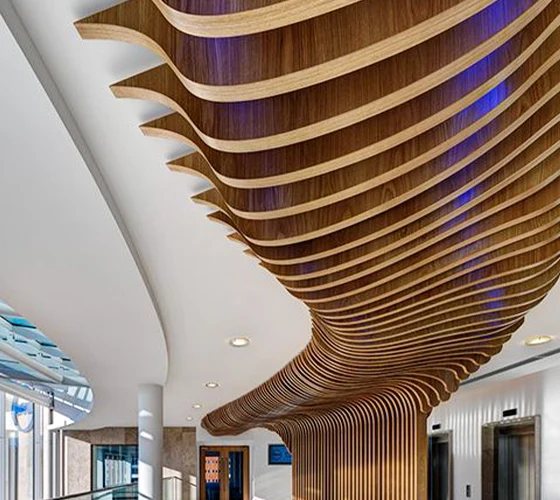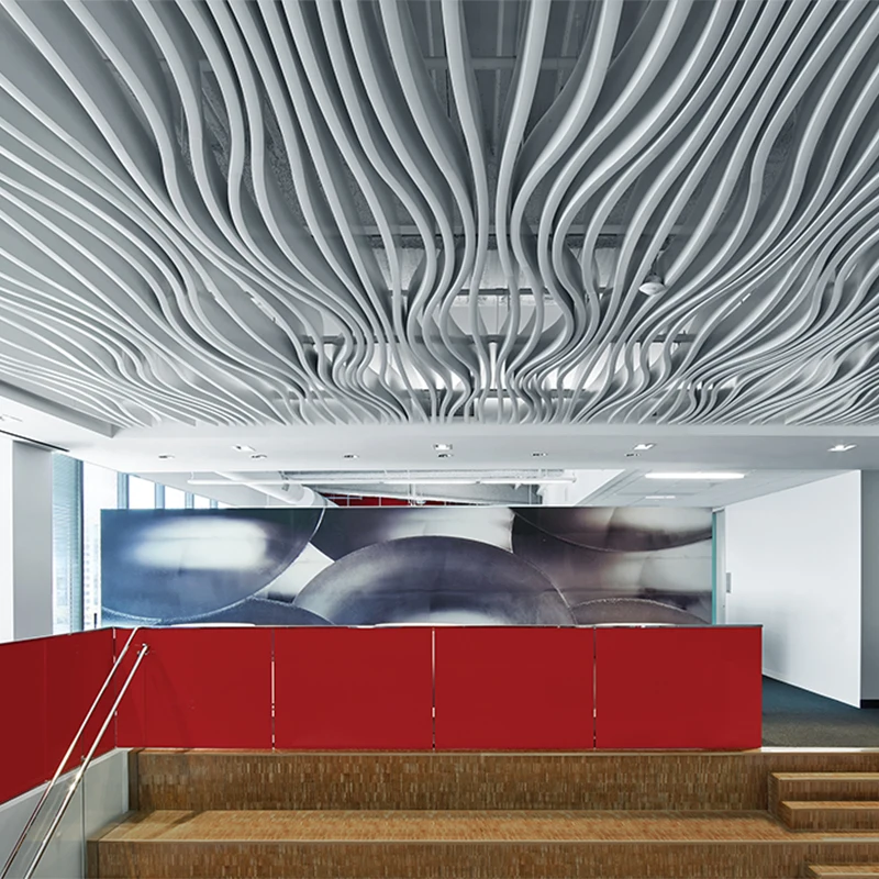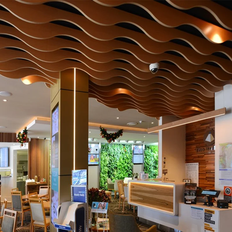 Special-shaped aluminum square tube is a specially processed aluminum decorative material with non-standard rectangular or square cross-sections, mainly used for indoor and outdoor ceiling and wall decoration. It is made into various shapes such as arcs, waves, and outer arcs through processes such as bending, welding, or extrusion to meet the personalized needs of designers