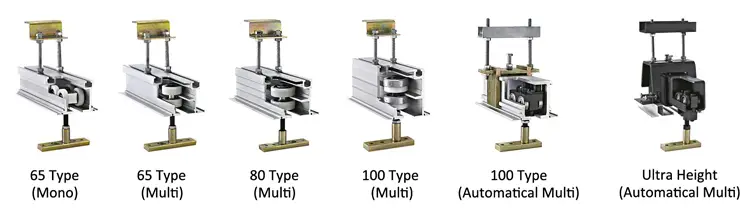 Base on the size of the panels, we can choose the system above accordingly, the aluminum system can only support the panel maximum up to 6m height, over 6m height will be using heavy duty steel system, because if the panel is too height, moving the trolley from the intersection will be difficult, the curved turn will be required for guiding the trolley to change direction automatically.